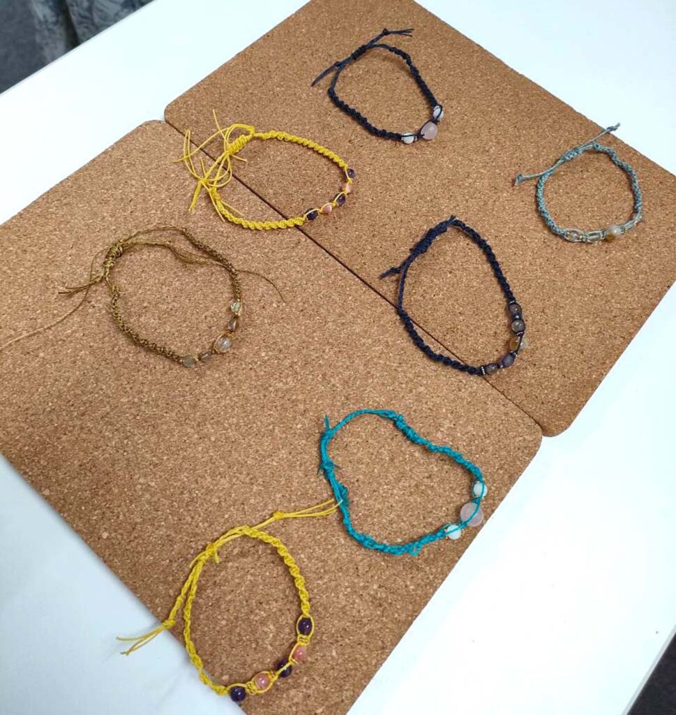 まずはレジュメに沿ってパワーストーンの知識を教わり、その後は揃えていただいた材料で早速ブレスレット作り♪一人一人の進捗に合わせて、丁寧にレクチャーしていただきました。