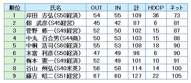ぶっちぎりで優勝した、岸田選手の言葉。「ゴルフボールを打つ音が変わってきた。」この身振り手振りを見ても、自信にあふれていますな。藤吉さんは初参加。次回はリベンジしたいとの力強い言葉あり。